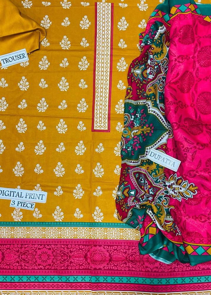 3 Pcs Women's Unstitched Lawn Printed Suit